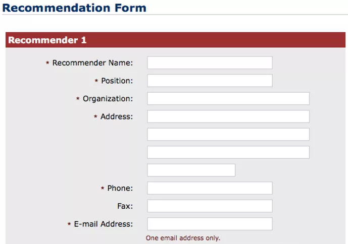 至少需提供两位推荐人相关信息,推荐人的电子邮箱必须提供,澳大会发含有推荐表格链接的邮件给推荐人填写。如有申请老师,推荐人可将邮件转发给申请人来填写处理。