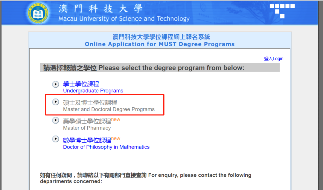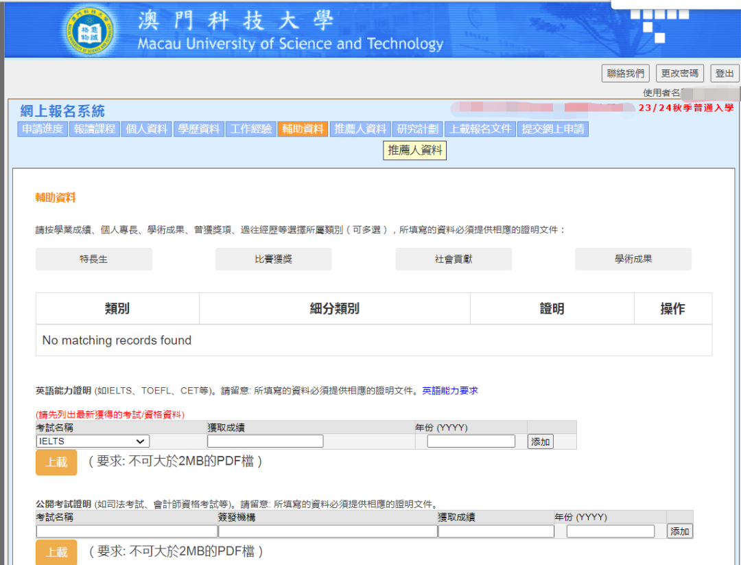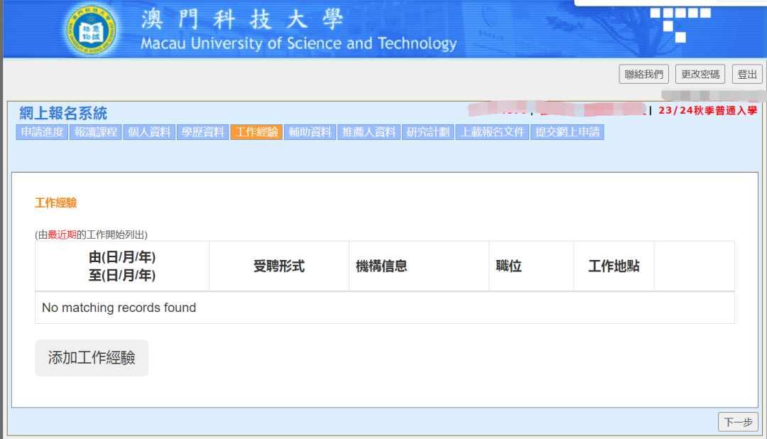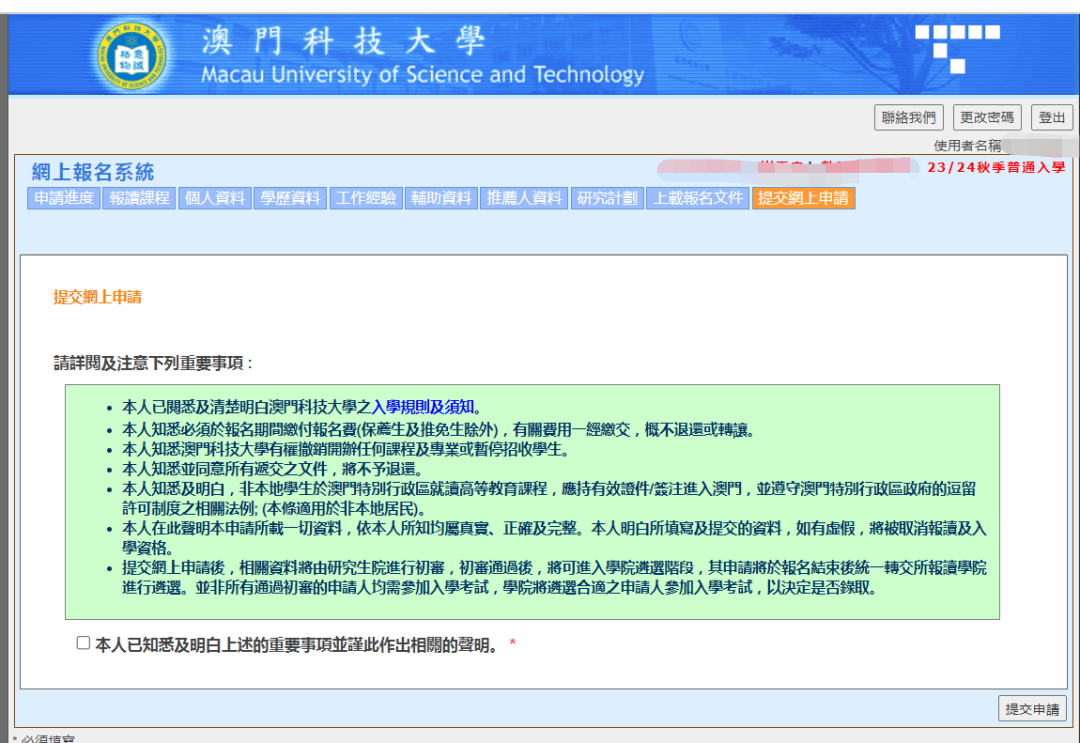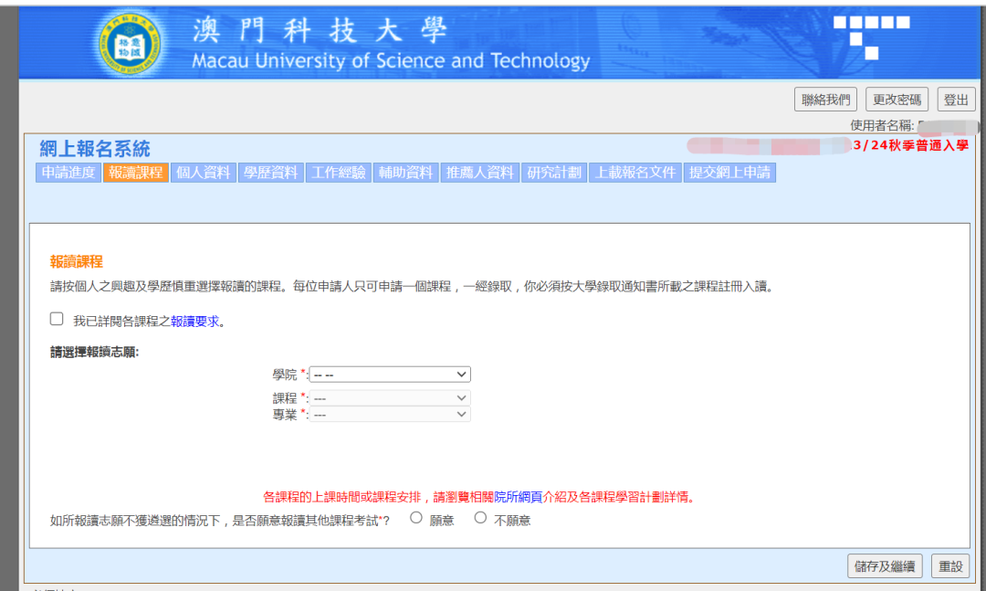 澳科大的网申系统就更简单了,都是中文,跟着流程基本上也都会。因为硕士申请通道已经关闭,我就用博士申请的通道给大家展示,都是一样的(博士会多一个研究计划书)。