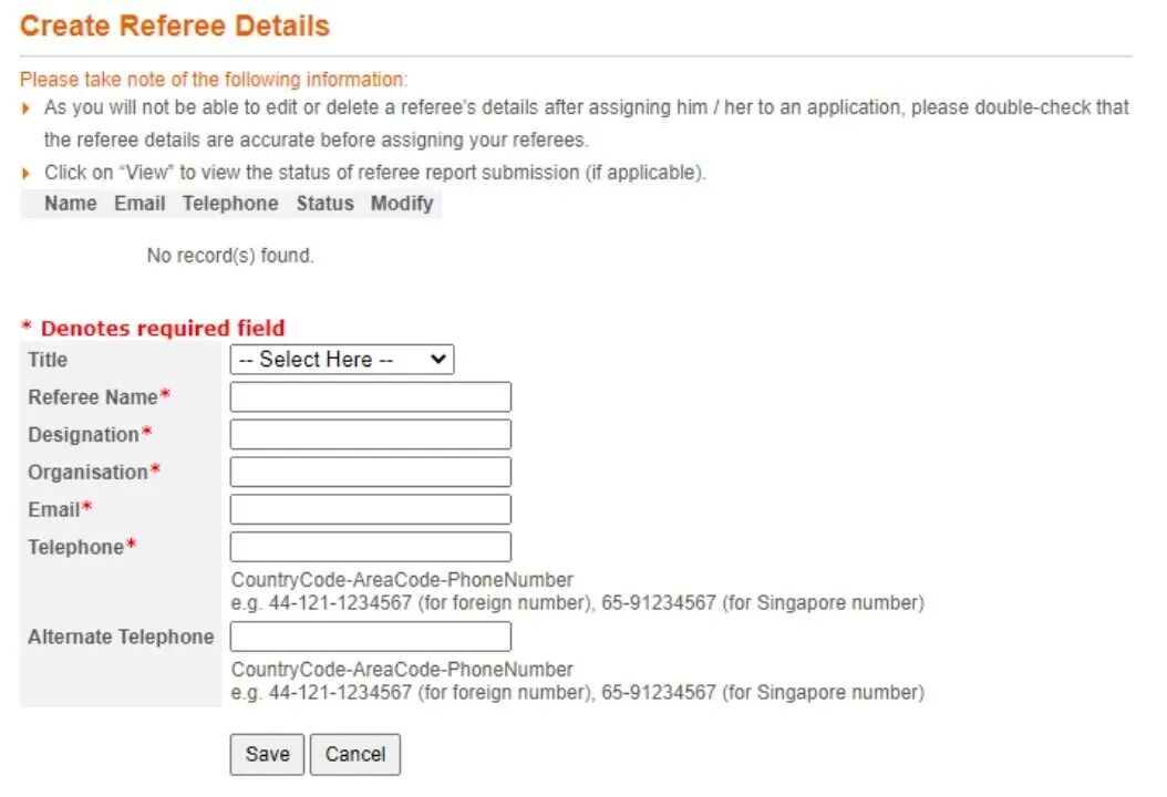 NUS要求填写推荐人的信息,包括姓名、工作单位、职位、邮箱地址和电话号码。注意推荐人的邮件地址一定要检查清楚,建议用推荐人带有单位信息的邮箱地址。